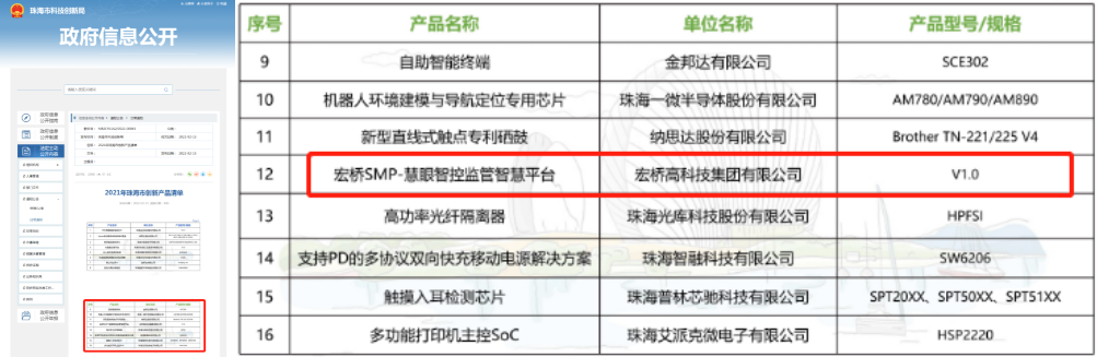 近日,珠海市科技创新局公布了2021年珠海市创新产品清单,宏桥“SMP-慧眼智控监管智慧平台”(以下简称:慧眼智控)凭借先进的数字化应用治理能力和优异的在线运行表现成功入选。